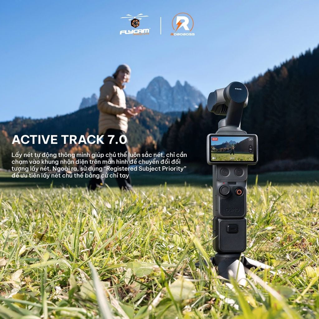 Bên cạnh đó, hệ thống gimbal cơ học 3 trục tiếp tục là nền tảng cốt lõi, mang lại khả năng ổn định hình ảnh mượt mà trong mọi chuyển động. Kết hợp với công nghệ theo dõi chủ thể thông minh thế hệ mới Active Track 7.0, thiết bị giúp khóa nét và bám chủ thể chính xác hơn, hỗ trợ hiệu quả cho các nhà sáng tạo nội dung khi quay một mình.