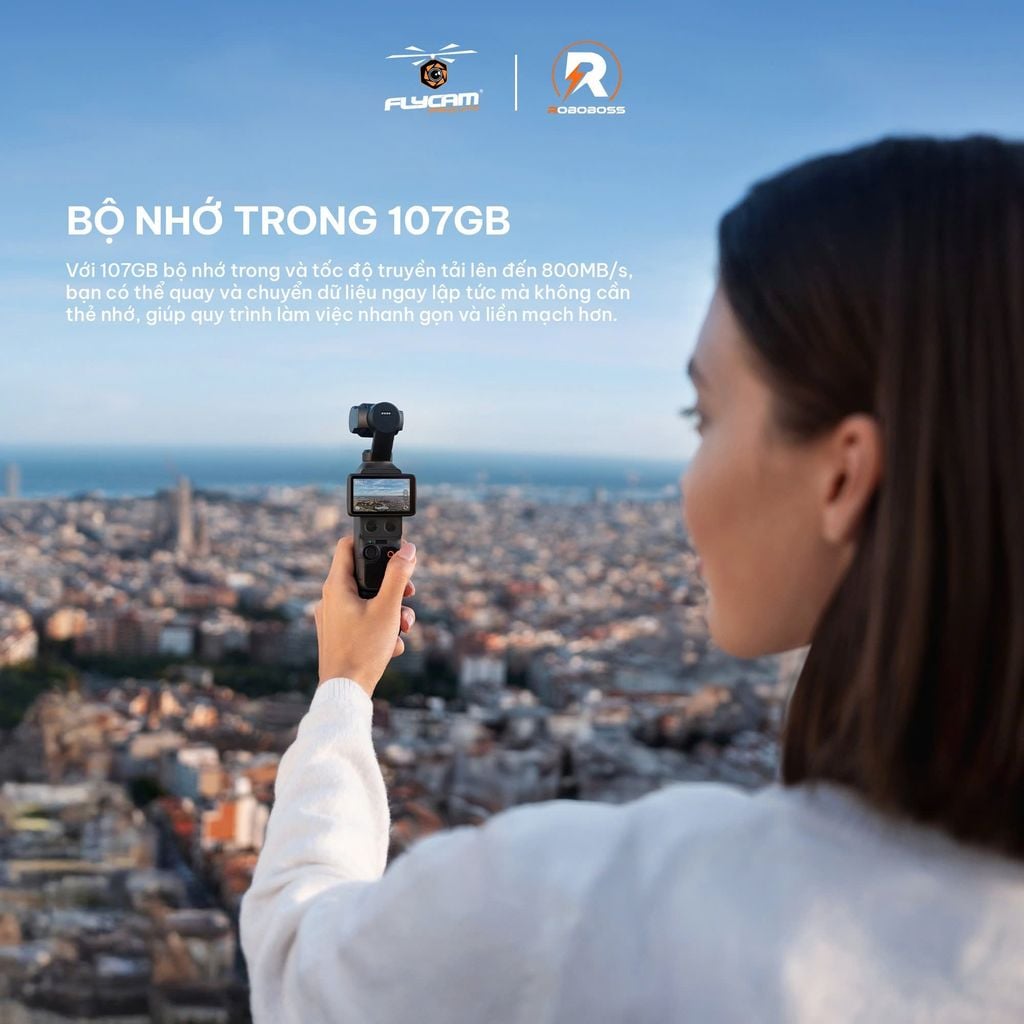 Thiết kế của DJI Osmo Pocket 4 vẫn giữ sự nhỏ gọn đặc trưng nhưng được tối ưu tốt hơn về trải nghiệm sử dụng. Màn hình cảm ứng xoay linh hoạt cho phép chuyển đổi nhanh giữa quay ngang và quay dọc, phù hợp với xu hướng nội dung trên các nền tảng mạng xã hội. Đồng thời, việc tích hợp bộ nhớ trong với dung lượng lên đến 107 GB giúp người dùng có thể quay và lưu trữ trực tiếp mà không cần phụ thuộc hoàn toàn vào thẻ nhớ ngoài.